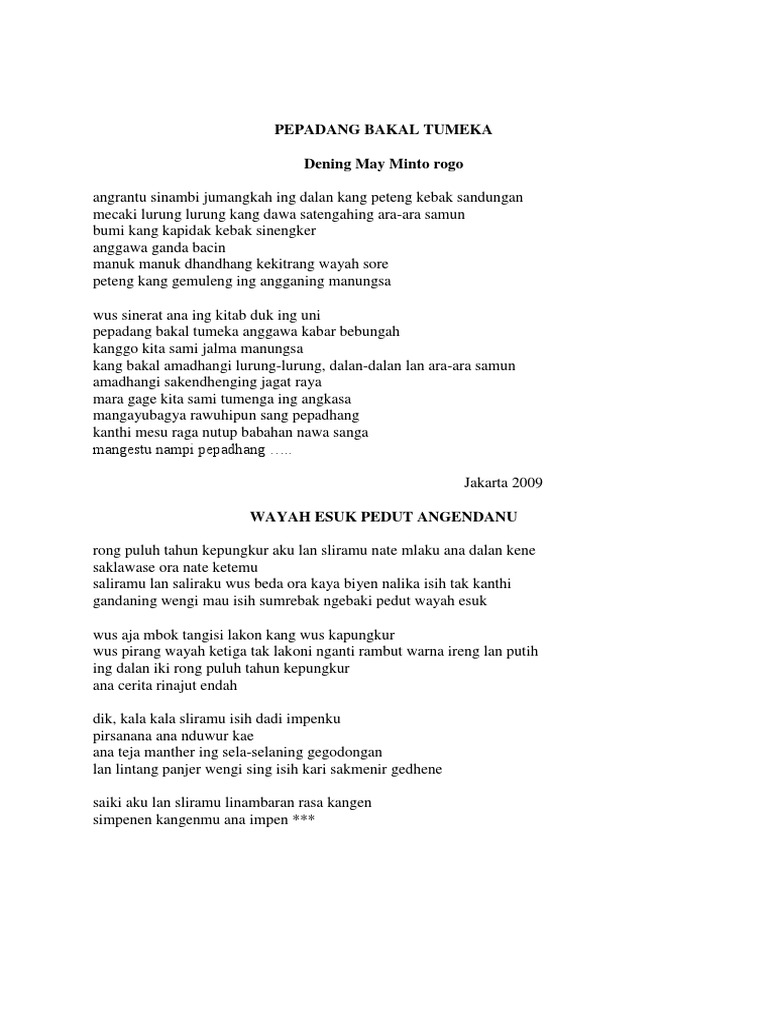 Puisi Jawa Pepadang Bakal Tumeka Angrantu Sinambi Facebook